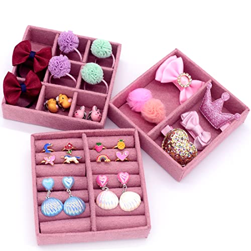 Specification: ShaqMars Little Girl Kids 3 Layer Lint Jewelry Box with Mirror and 35 Pieces Girl Princess Jewelry Dress Up Accessories Toy Playset Set