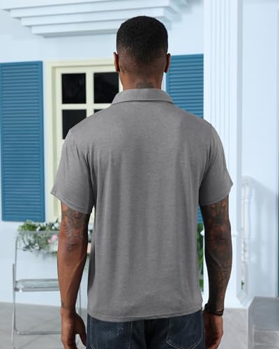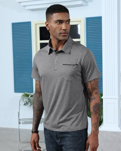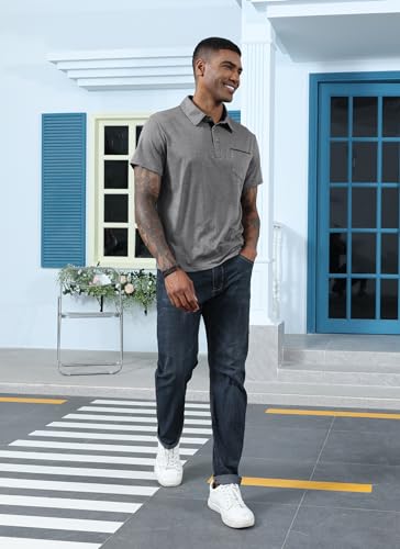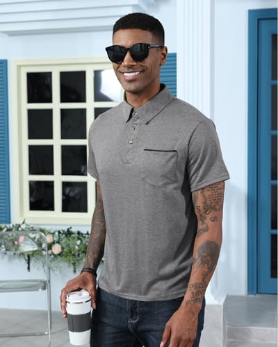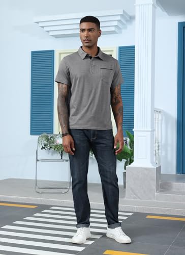 Mens Fashion Polo Shirts Cotton Classic Long Sleeve Thermal Button Shirt with Pocket